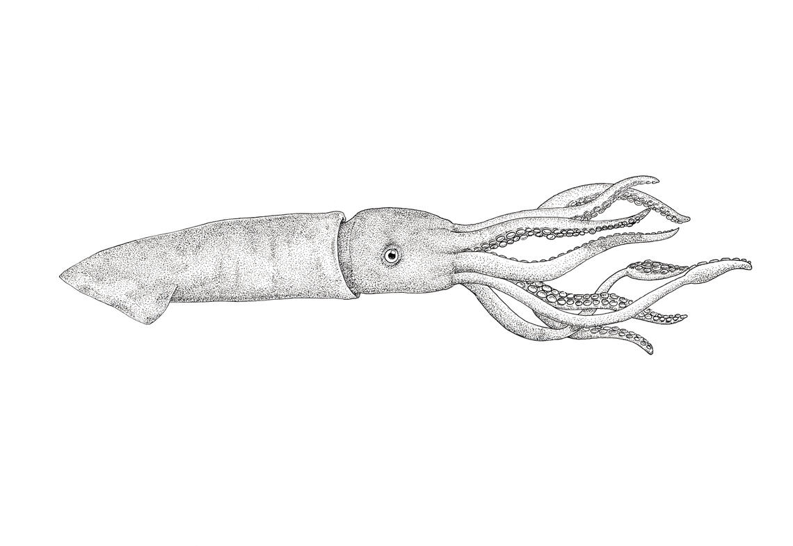 A3, Ink on paper. A couple of illustrations of different seaanimals.